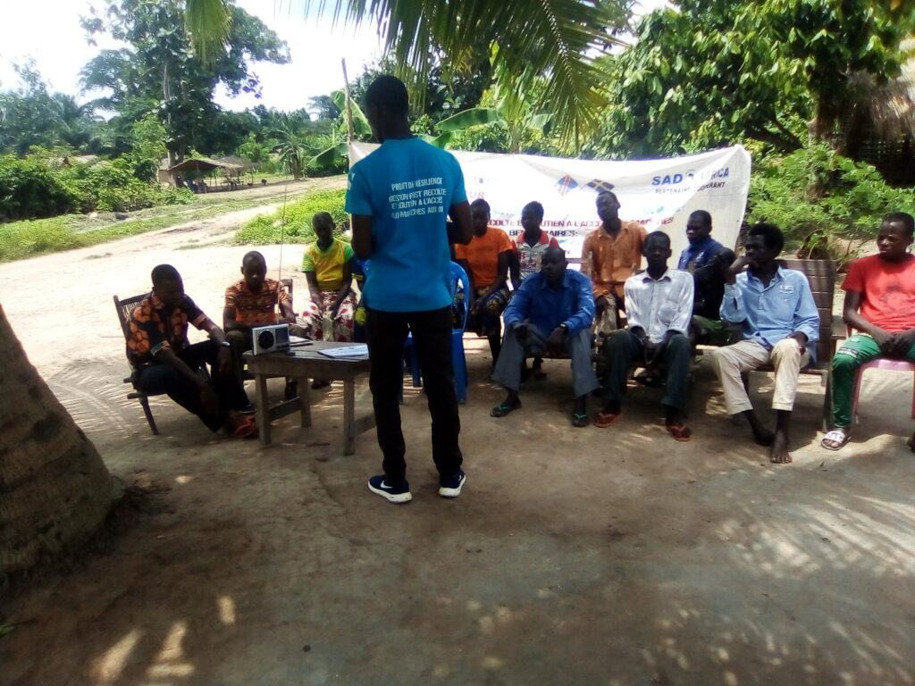 - Identification des membres actifs des OPs, avec un niveau de communication acceptable, à raison d’au moins 2 par organisation pour bénéficier des formations au niveau 1, directement des équipes de SAD AFRICA, en vue de les répercuter au niveau 2, aux autres membres des OPs et des communautés
