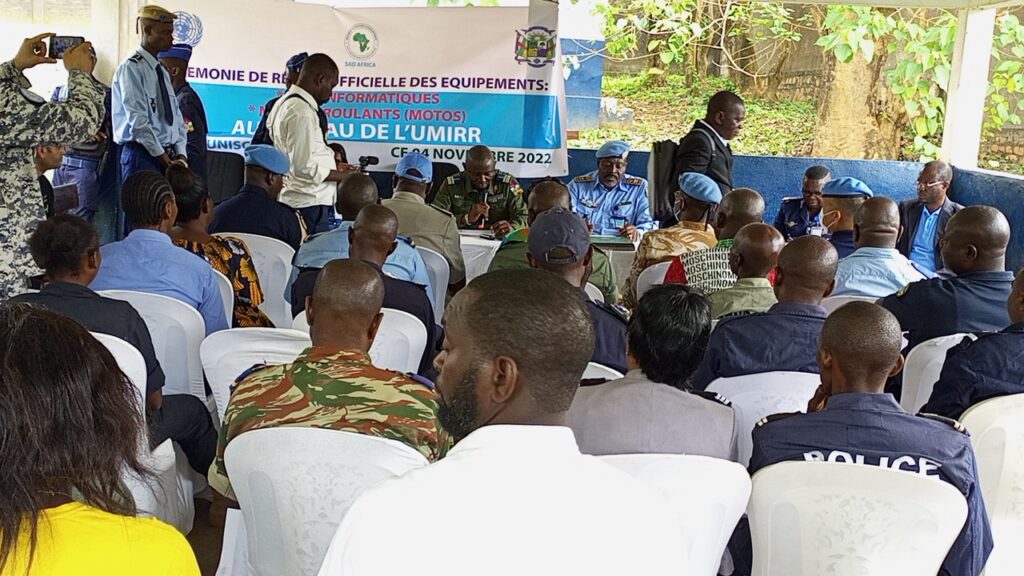 cérémonie de remise le 4 novembre 2022, en présence de personnalités de la MINUSCA/UNPOL, des bénéficiaires et des médias.